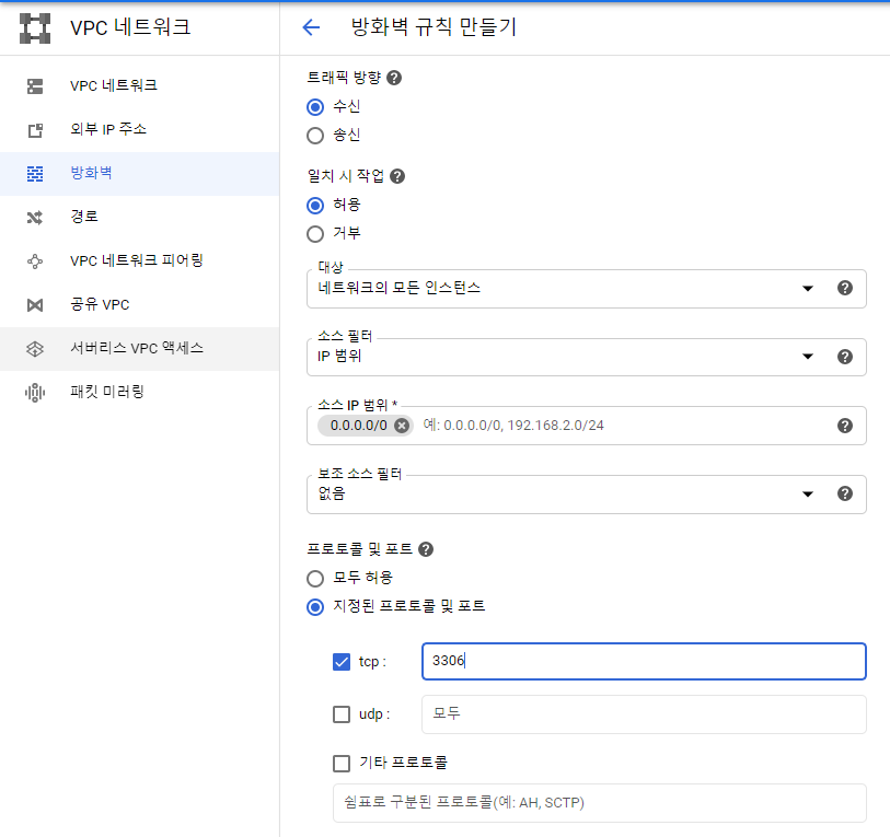 모두 완료되면 GCP의 Compute Engine의 방화벽 설정을 해줘야한다.
