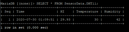 그러면 DHT11 테이블에는 5개의 컬럼이 존재한다. (Seq, Temperature, Humidity, Heat Index, Time)
