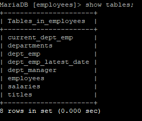 show databases; 를 하면 employees라는 DB가 생성되었음을 알 수 있다.