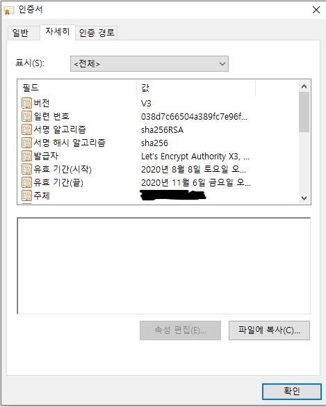 다음과같이 Let's Encrypt의 인증서가 보인다.