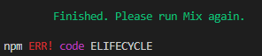 laravel mix 를 다시 시작하라고 하면서 동시에 에러를 던져줍니다.