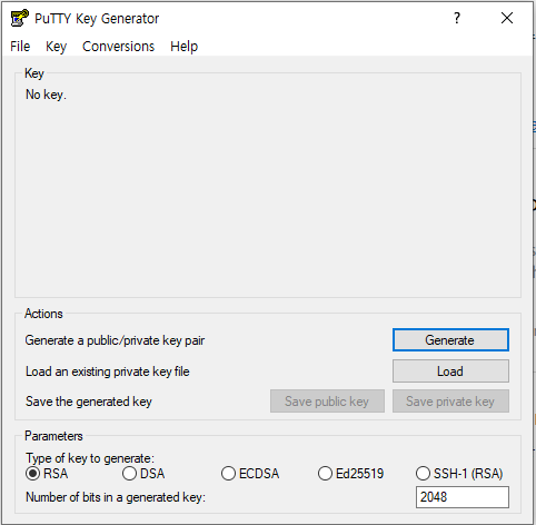 puttygen.exe를 실행한다.