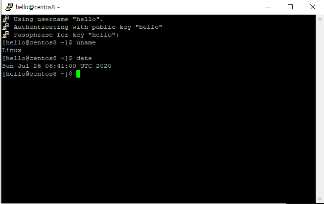 만약 key생성과정에서 passphrase를 정하지 않았다면 바로 SSH접속이 될 것이다.