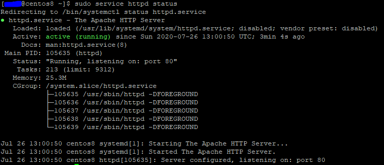 설치가 완료되면 위 명령으로 httpd 데몬을 실행시킨다.