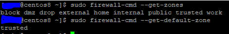 zone의 목록을 확인해보면 다양한 이름의 zone이 있다. 이중에서 기본 설정 zone은 trusted로 되어있다.